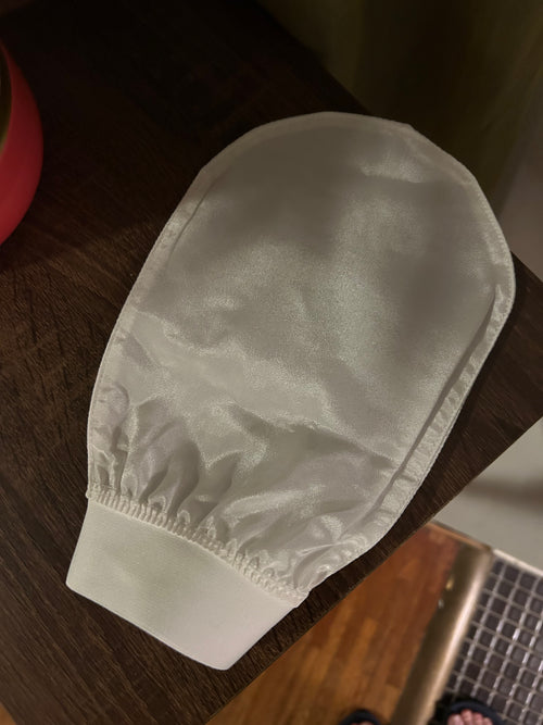 Inspiré des rituels de beauté ancestraux, notre gant exfoliant en soie invite à ralentir, à purifier, à se renouveler. Chaque geste libère la peau de ses impuretés, réveille la régénération cellulaire et aide à lisser le grain de peau. Jour après jour, votre corps paraît plus soyeux, plus ferme, naturellement éclatant. Un rituel pur, aux effets immédiats, pour une beauté qui se ressent autant qu’elle se voit.